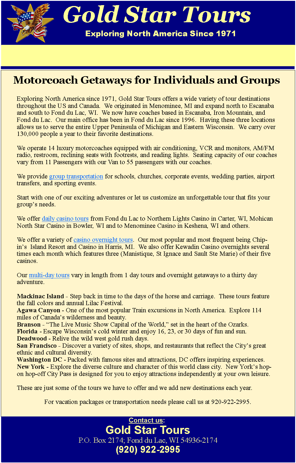 Home / Tour Packages / Casino Overnighters / Daily Casino Tours / Charter Services